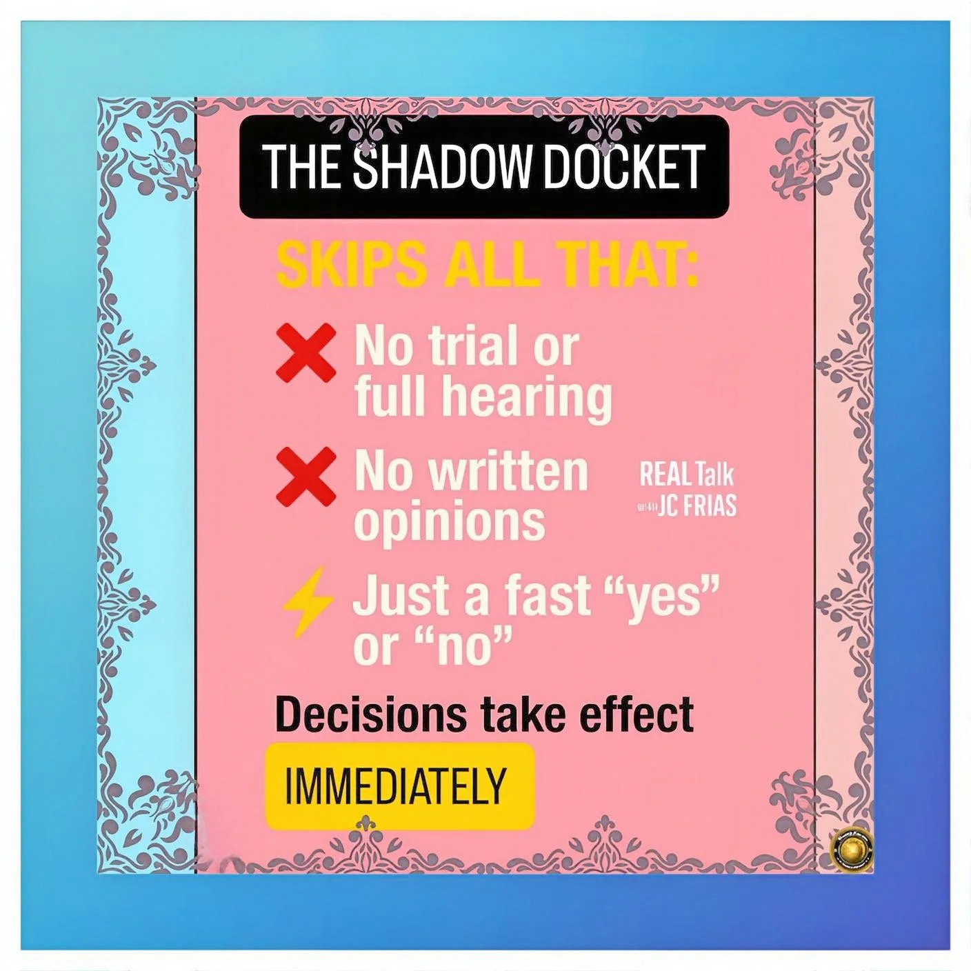 These decisions established a pattern: the shadow docket became the vehicle through which Trump’s most controversial policies were implemented, lower court objections were neutralized through expedited Supreme Court relief, and the administration accomplished through interim measures what might not survive full merits review.